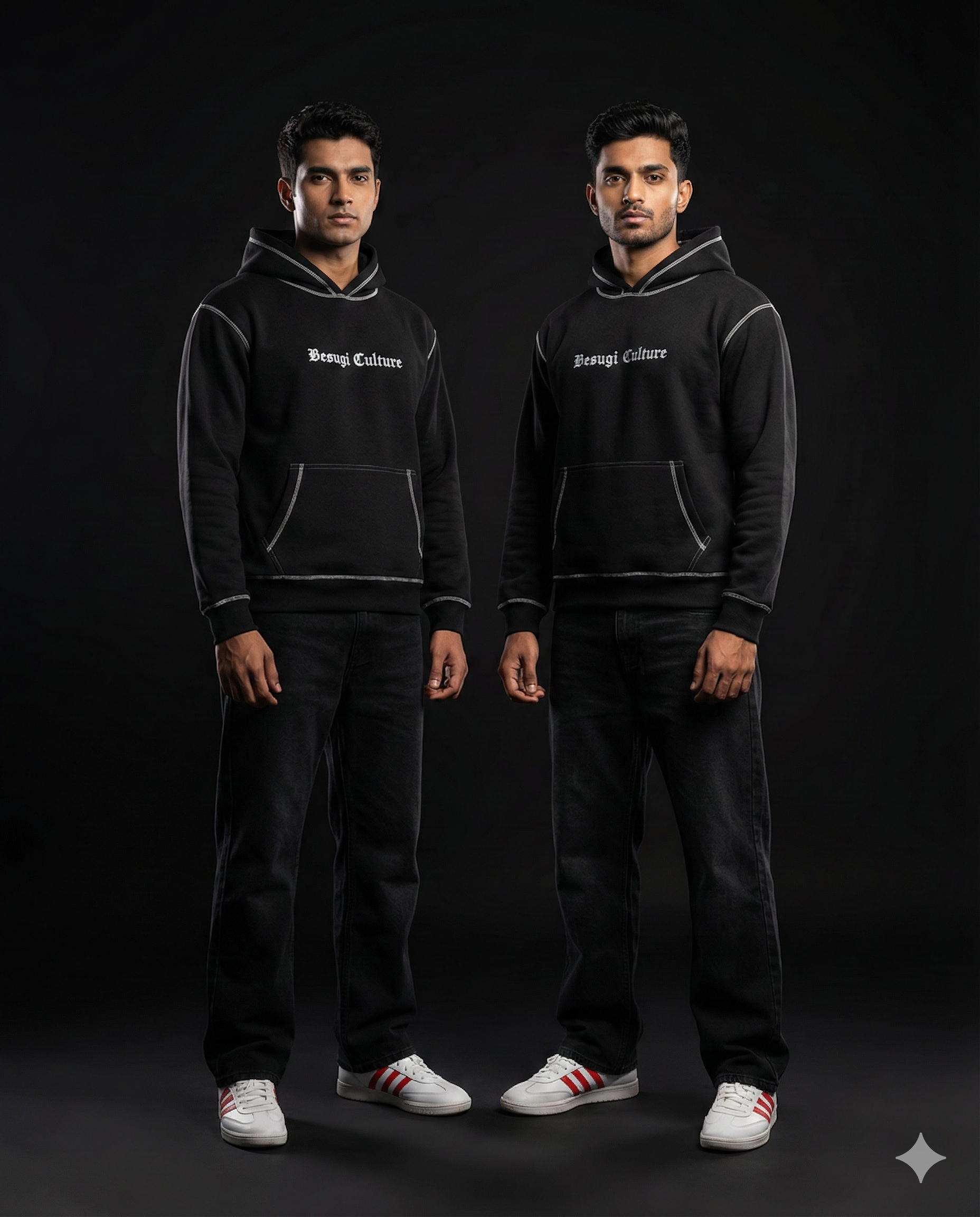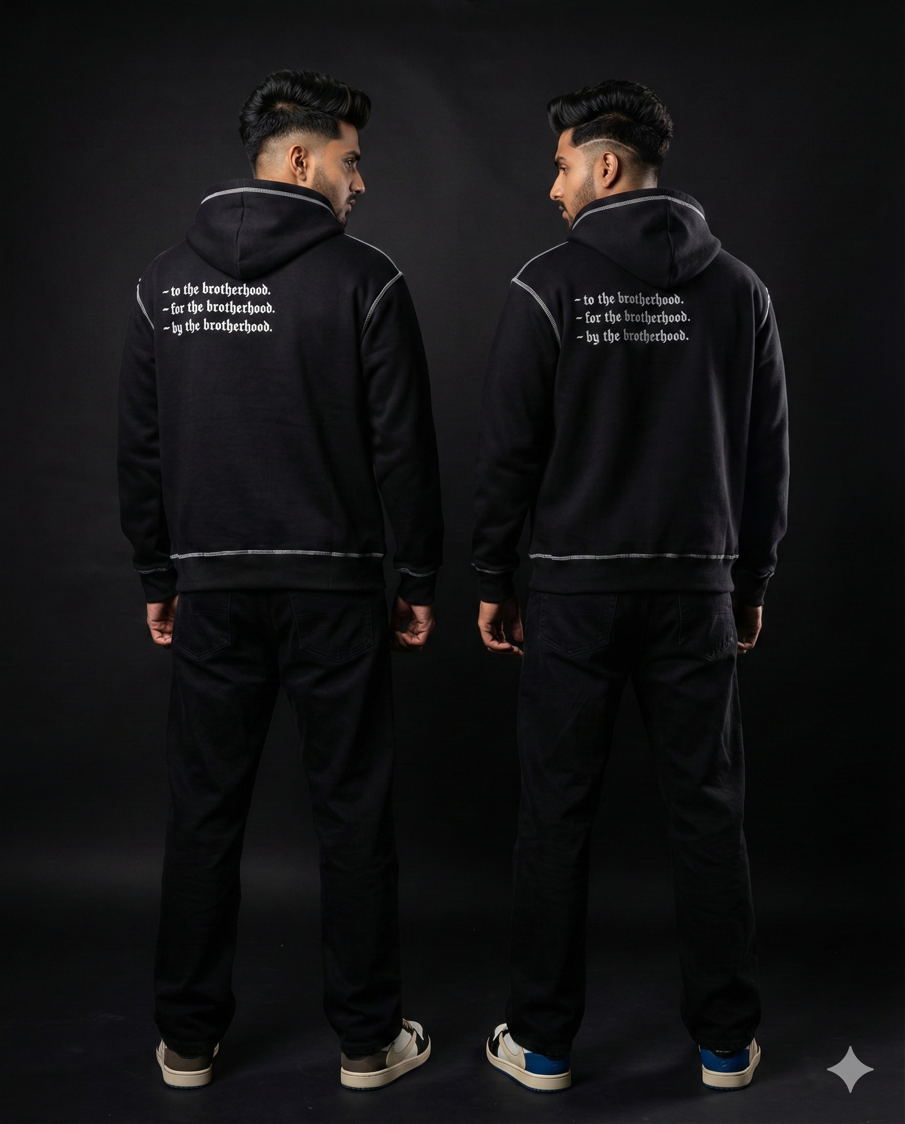 Signature Touch: Subtle "BrotherHood" design on the front and embroidered breathtaking design with VESUGI logo on the back, reflecting understated desi vibe and the brand’s aesthetic values.